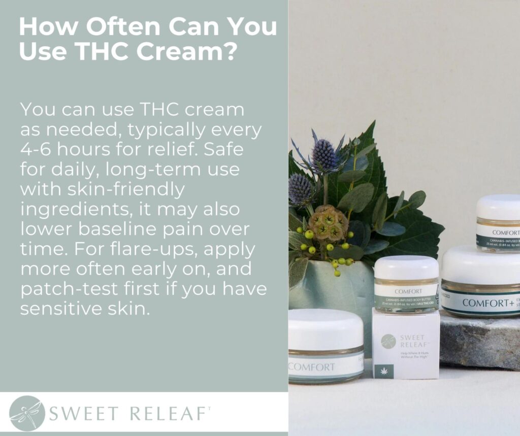 For most people, topical THC can be applied as needed, with reapplication every 4-6 hours for ongoing relief.