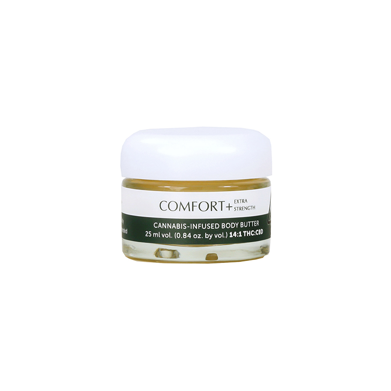 A high-THC, full-spectrum body butter suitable for daily nerve discomfort. It absorbs quickly into the skin and leaves a smooth, non-greasy finish while delivering consistent localized relief. - Comfort+ Extra Strength Body Butter