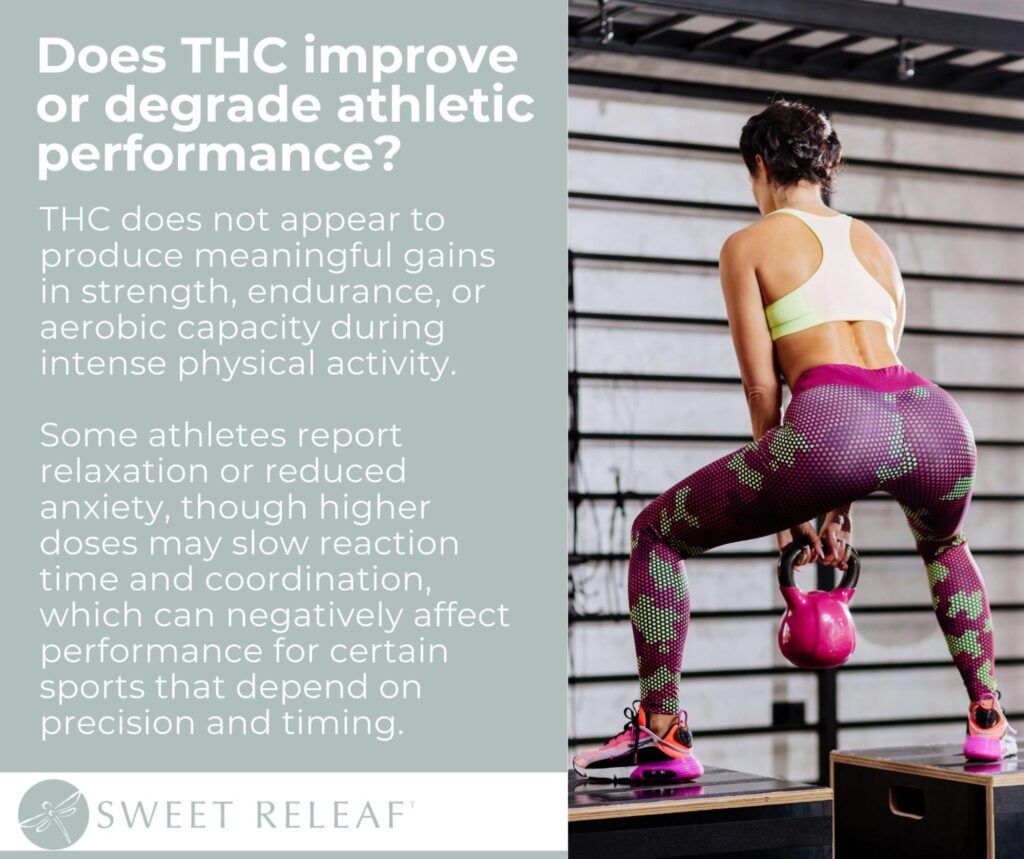 THC affects each athlete differently. Reaction time may slow in sports that demand rapid decisions or precise timing. Elevated heart rate during exercise can also make high-intensity training feel uncomfortable for some people.
